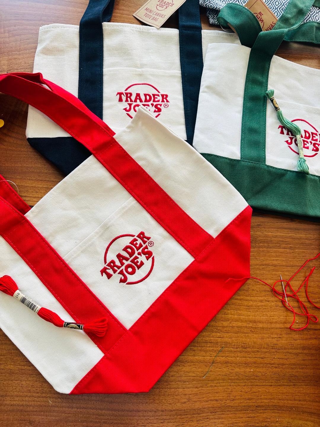 Learn how to embroider bows and name on a Trader Joe’s mini canvas tote. In this hands-on, beginner-friendly workshop, you’ll be guided step-by-step through basic embroidery techniques while creating a custom tote that’s both cute and functional. All supplies provided, including a Trader Joe’s mini canvas tote bag.